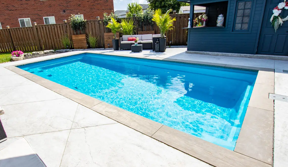 The Reflection is a stylish rectangular swimming pool with entry steps perfectly positioned at both ends of the pool, along with a full length bench seat to suit a variety of purposes without compromising space for swimming.